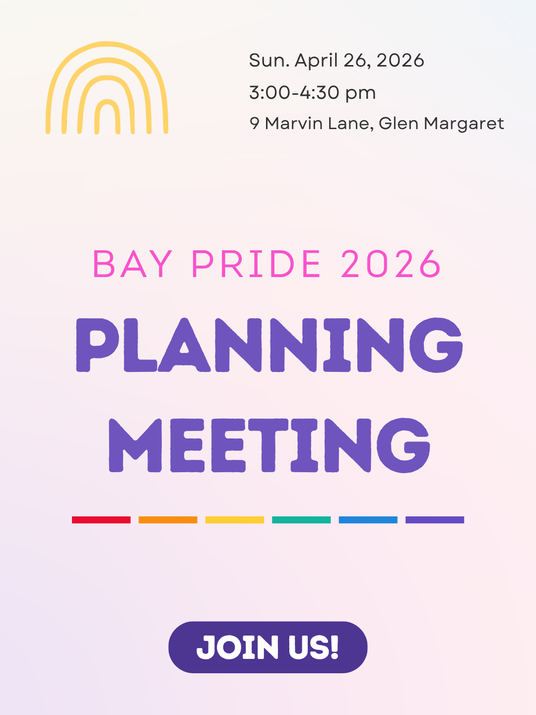 Join our open meeting to help organize the 2026 Bay Pride festival. We will be discussing merch, event plans, and outreach activities. Snacks will be provided. Anyone interested in getting involved is welcome to join - even if you are new! We encourage folks to show up and contribute in whatever ways feel right for you.